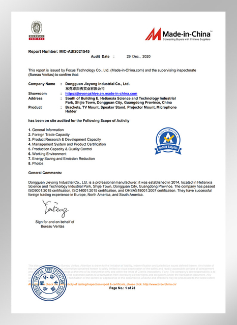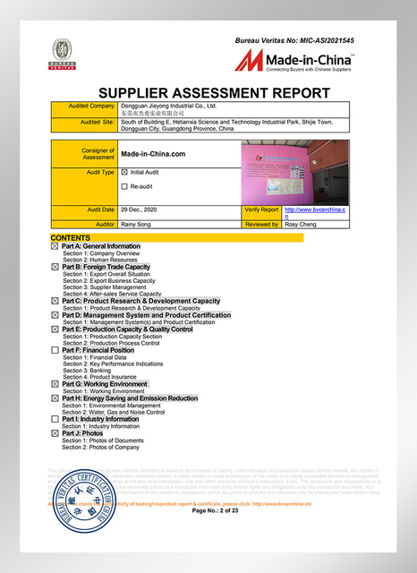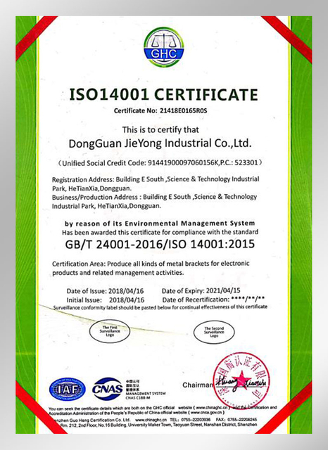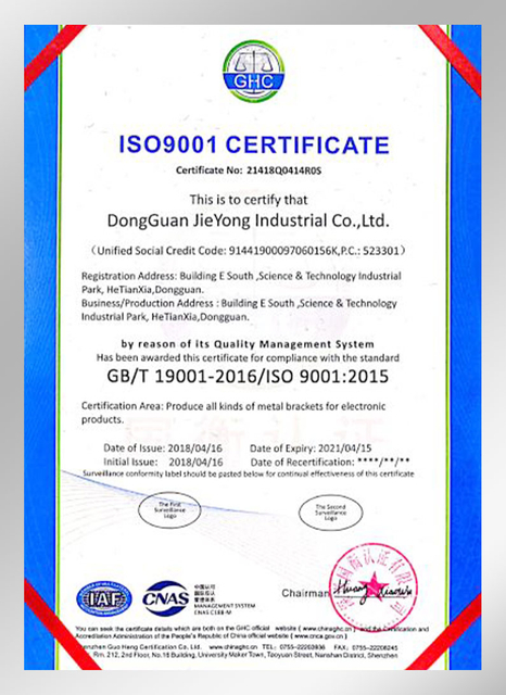 Jieyong defende o espírito empresarial de 'Confiabilidade, luta e responsabilidade', adere ao princípio da gestão honesta, win-win e inovação, e está empenhada em construir um suporte de primeira classe e centro de fabricação de acessórios.